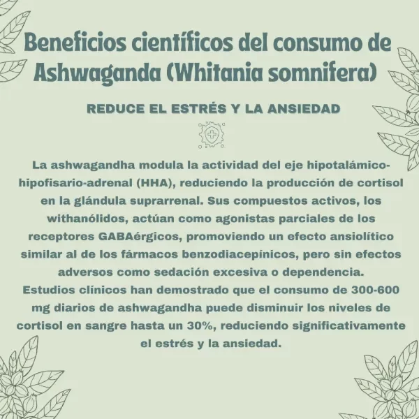 Reduce el estrés y la ansiedad – Ayuda a equilibrar el cortisol, la hormona del estrés.